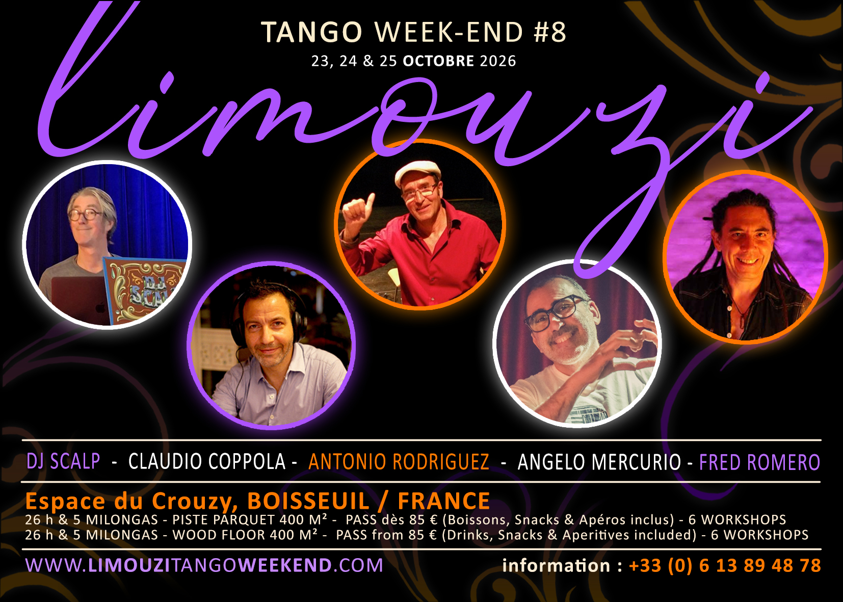 5 milongas avec les meilleurs DJs du moment, soit un total de 26 h de bal !